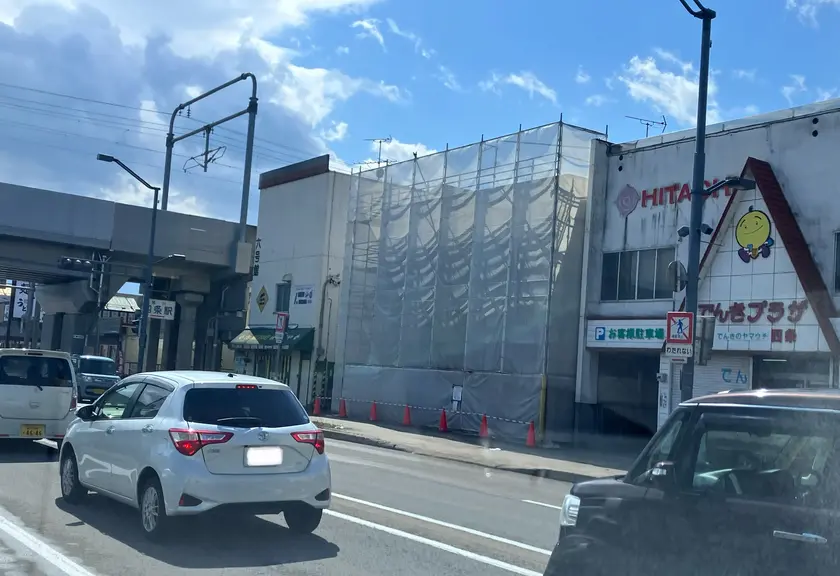 昨年秋に見た時は建物が残っていたのですが、先日見たら養生がされていて、もう建物を見ることは出来なくなっていました。
