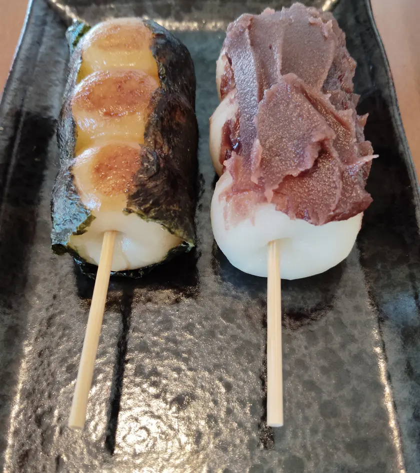 「大きな焼きだんご」も焦げ目が香ばしく、海苔の風味が絶妙です。