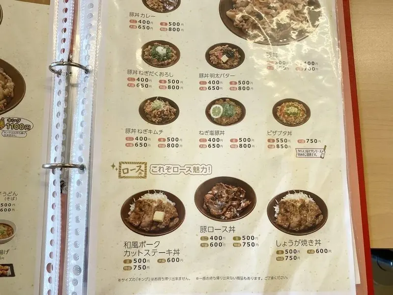 丼のファーストフードというだけあって、ワンコイン以下のメニューもたくさんありますが、今回はちょうど税込み500円の中から「和風ポークカットステーキ丼」の並を注文してみました。