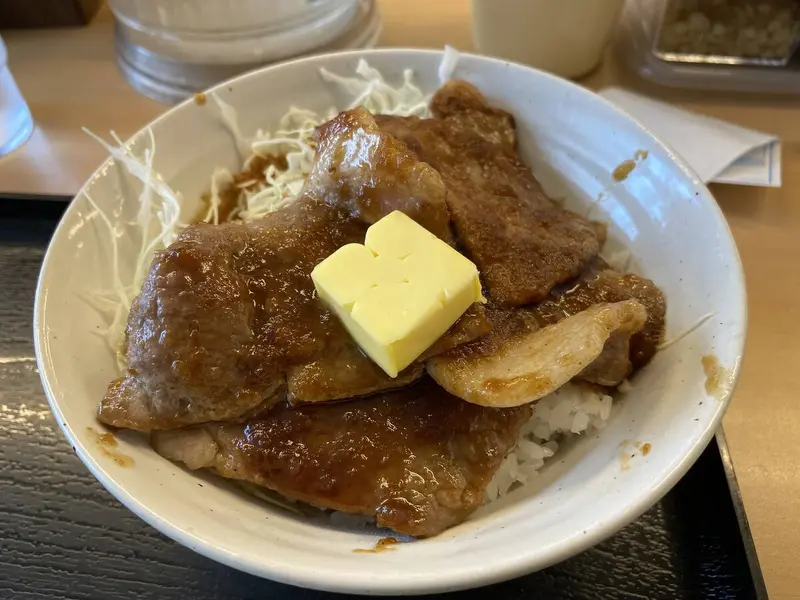 いわゆる和風の豚丼に、はたして合うのかと少し不安でしたが、せっかく付いていたのでバターを載せてみました。