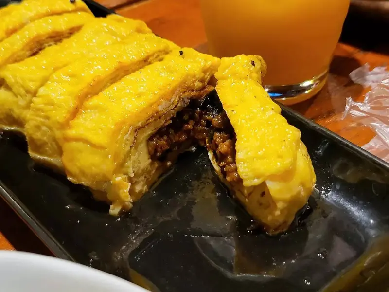 韓国風の玉子焼きは、中にピり辛味付けの挽き肉がたっぷり。