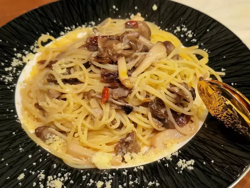 食感が程よく残ったパスタにたくさんキノコが絡まり、口の中が秋の香り。