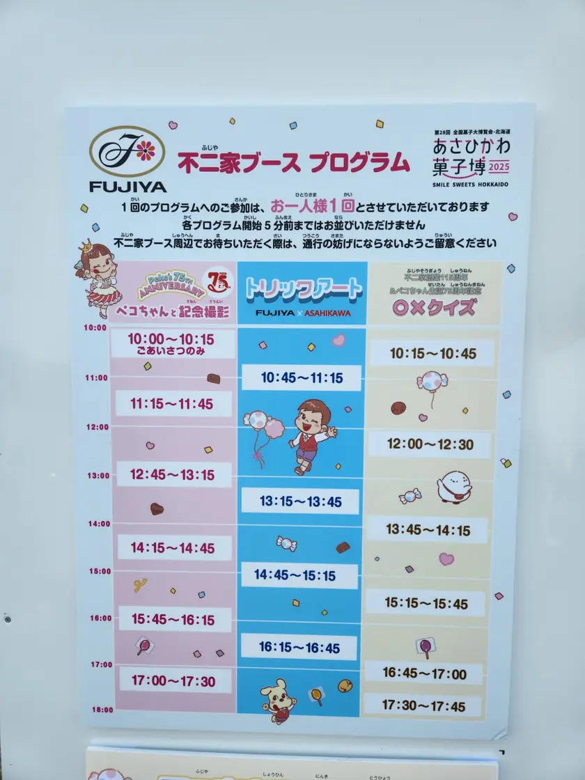 【あさひかわ菓子博】スイーツファミリーランド北海道のイベント開催時間まとめ(大手菓子メーカーキャラクターが登場!)