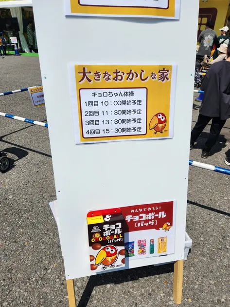 チョコボールのフォトスポット、森永の歴史展示、チョコボールバッグ作り、キョロちゃん体操など盛りだくさん。