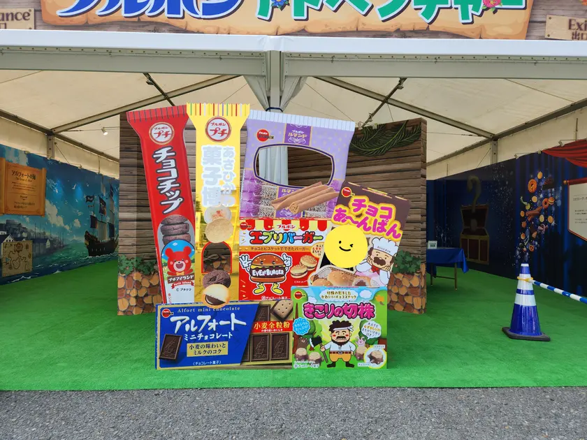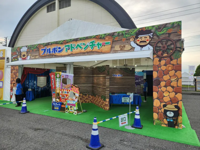 ロングセラー商品に関するクイズやミッションをクリアしながら冒険する体験型ブース。全クリアで限定ノベルティをゲット。ブルボン人気商品の顔はめパネルもあります。