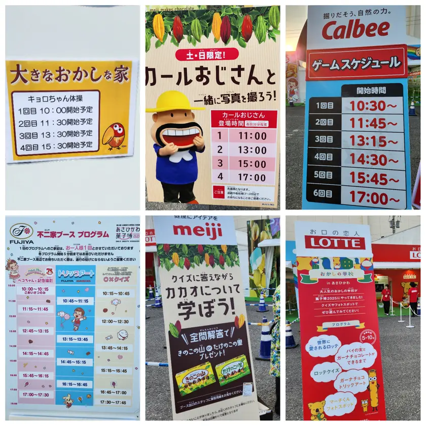 大手菓子メーカー7社が展開する、大人も子どもも楽しめるゲーム・クイズ・体験型コンテンツが盛りだくさん!以下に、各ブースの内容と開催時間をまとめました。
