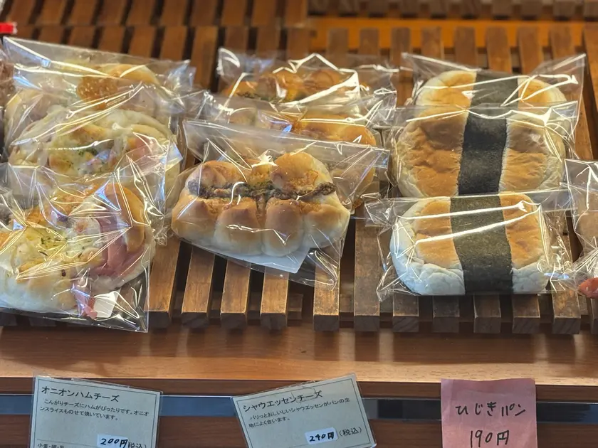 店内で手作りしたカレーを包んだ「手づくりカレーパン」や、ひじきの煮物を使った和風の「ひじきパン」など、毎日の食事にもぴったりなパンが並びます。