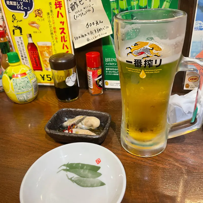 この日は「蒸し牡蠣」をリピート、「焼き牡蠣」、「あさりの酒蒸し」にビール、ハイボール、レモンサワー、締めに冷酒としこたま飲んで、お代はひとり3,000円ちょっと(だったはず)。この企画にぴったりのお店!