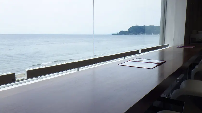 やはり人気なのは海を眺めながら食事ができるカウンター席です。横長の広い窓があり、海が広がっているのが見えます