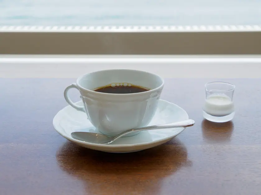 2階の喫茶室でオーシャンビューを楽しみながら食事ができる