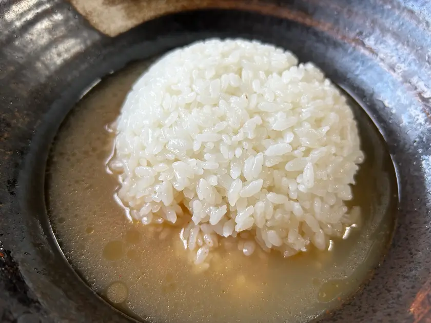 麺を食べ終わった後にスープにライスを投入!