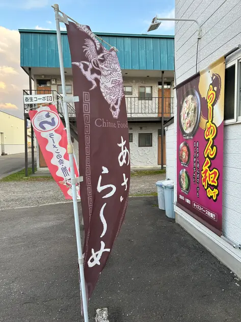 お店の前には『あさりらーめん』と書かれたのぼり旗が。