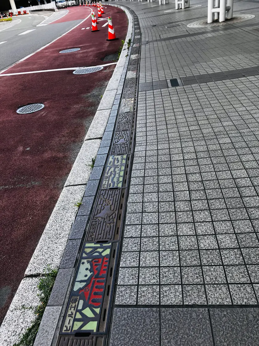 ターミナルビル1Fから外に出て、バス・タクシーレーンの側溝の蓋を見に行きます。いつか紹介したいと思ってました!行かれた方のお楽しみ、ということで全デザインはあえて載せないでおきますね。