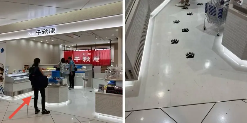 私が生ノースマンを購入したのは、バラ売りで1個から買える国内線ターミナルビル2Fスイーツアベニュー内「札幌千秋庵 新千歳空港店」です。店舗の床も可愛いから見てね!