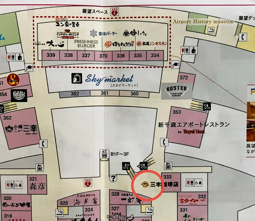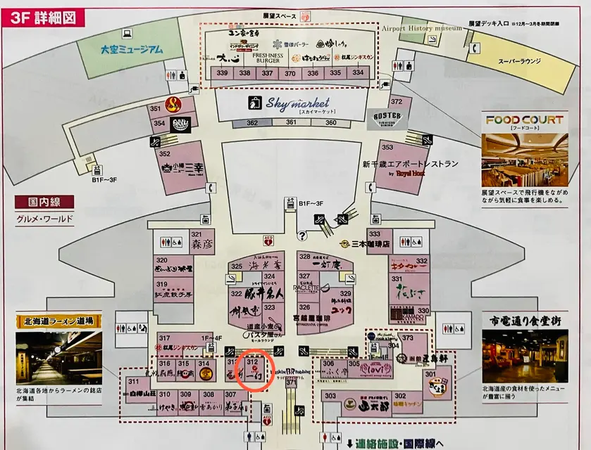 国内線ターミナルビル3F、メインエスカレーターからフードコートに向かい途中にあります。