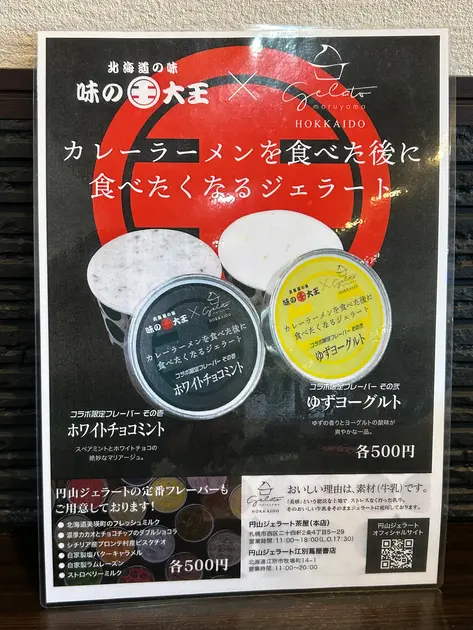 今回は、「味の大王 総本店」×「円山ジェラート」コラボフレーバーの『ホワイトチョコミント』と『ゆずヨーグルト』をご紹介致しました。このフレーバーは2つとも『カレーラーメン』を食べた後にピッタリの爽やかジェラートでした。このジェラートを食べると、もう一杯『カレーラーメン』が食べられそうなほど爽やかな気分になります。