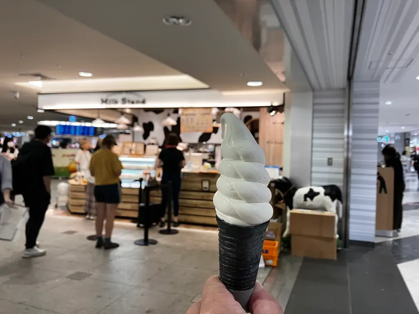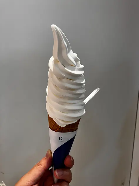 ※きのとやは新千歳空港に2店舗あり、「札幌農学校 新千歳空港ファクトリー店」の酪農ミルクソフトも人気ですが、今回食べた画像のものは「きのとや 新千歳空港店」の極上牛乳ソフトの方です。