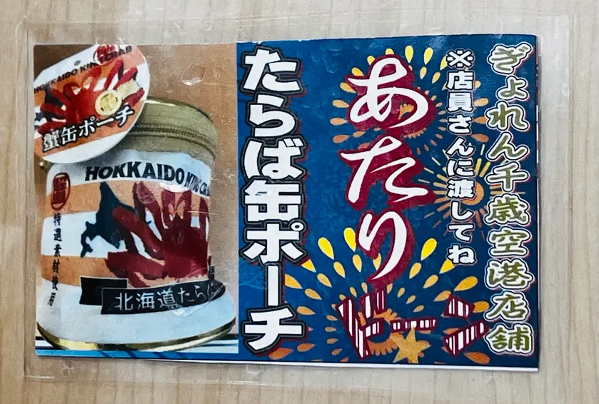当たりの引き換えの為に飛行機で戻る訳にもいかないので、「当たり券をゲットした幸運の証し」としてパウチしておきましたー。