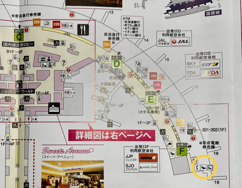 広いターミナルビルを縦横無尽に移動するには場所を示す地図が必須でしょう。