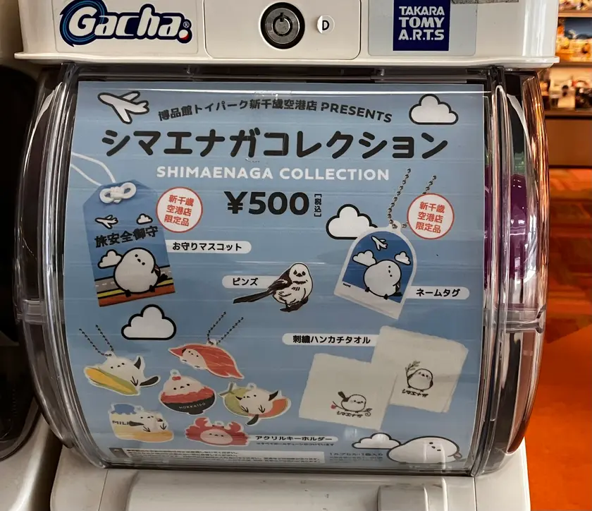 画像左のガチャは「シマエナガ」グッズが6台並んでました。