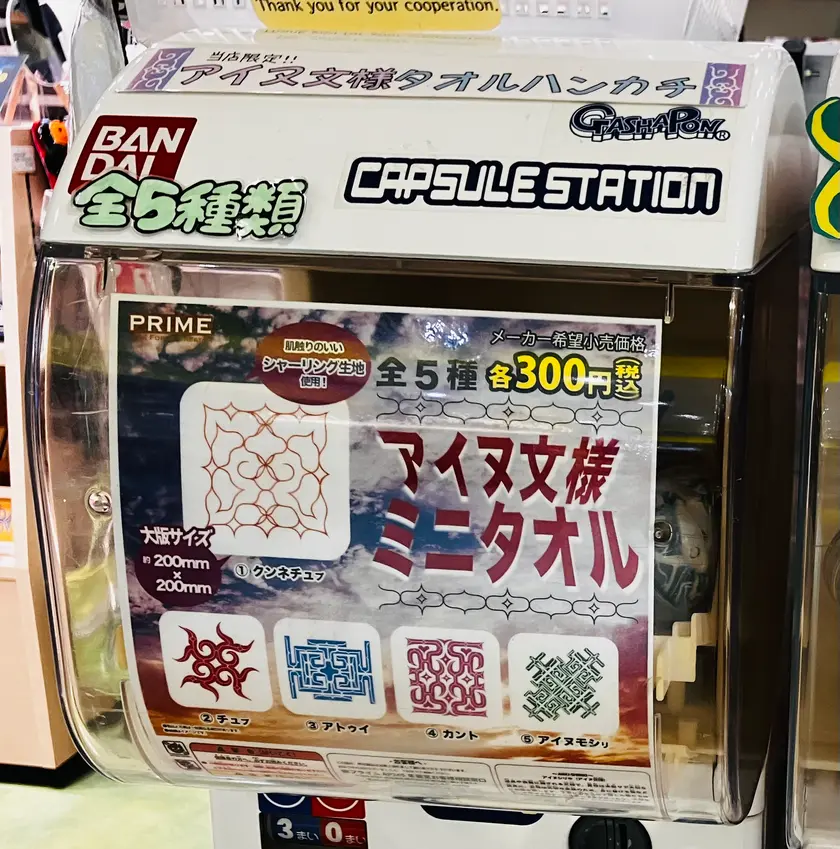 北海道に来た記念にアイヌ文様ミニタオルのガチャをやってみました。