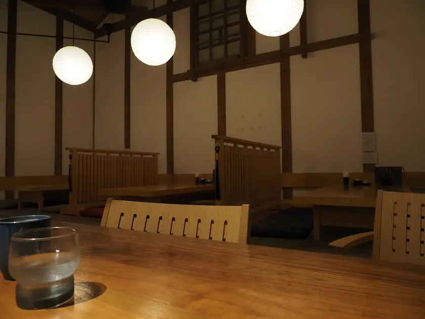 店内には、ゆったりと過ごせそうなテーブル席や座敷の席があり、落ち着いたきれいな雰囲気でした。BGMにジャズが流れていました。店内に窓はなく、海沿いにいることを忘れてしまいます。この建物は、ニシン漁で栄えた時代の歴史的建造物である橋本家の土蔵を改修しているそうですよ。