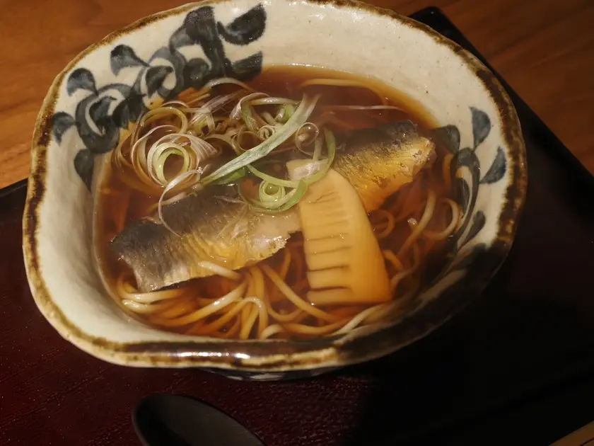 鰊御殿と聞くと、やっぱりにしんを食べておきたいなと、にしんそばを注文。趣のある器が印象的です。まずは温かい汁を一口。だしがしっかりきいた濃い目の味が美味しい!にしんもホロホロとして、しっかりした味でお蕎麦に合います。最後まで美味しくいただきました。