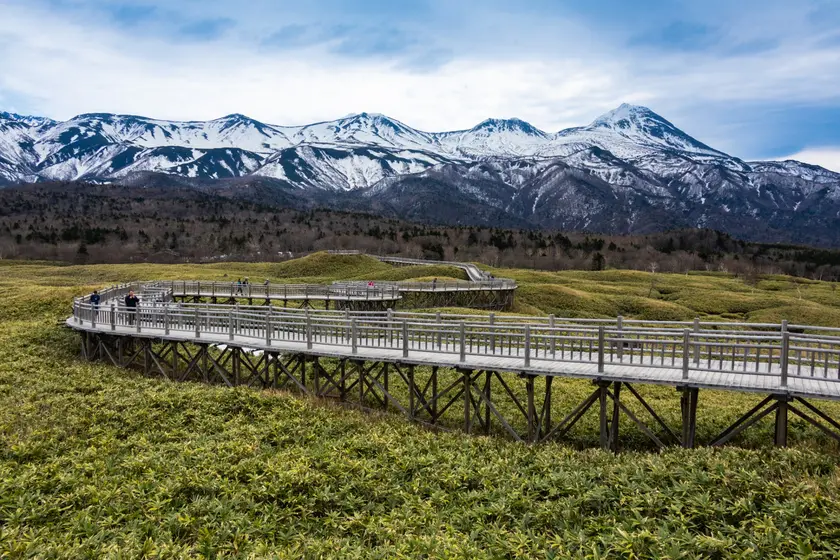 「高架木道」は全長約800m。コース内には一湖の湖畔展望台の他、オコツク展望台、連山展望台と三つの展望スペースが設けられています。ヒグマ除けの電気柵が設置されているため、装備なしで入れるコース。全期間無料で開放されており、利用手続きも不要です。