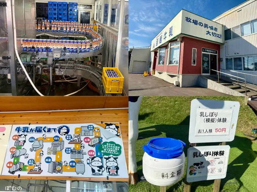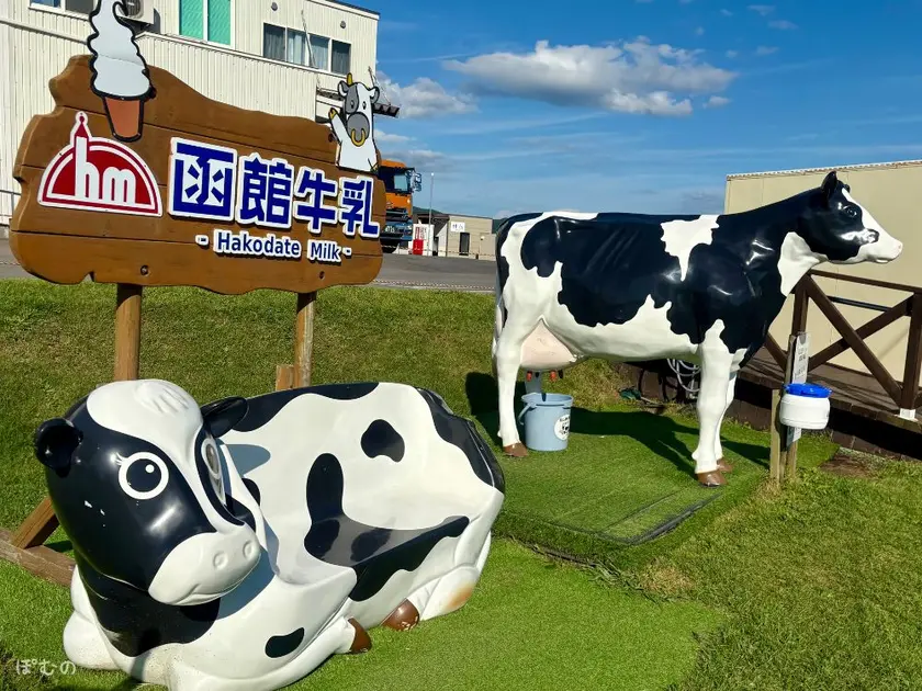 「あいす118」は函館牛乳の工場敷地内にあり、無料で工場を見学できます。ずらーっと函館牛乳がパック詰めされる姿は圧巻ですよ。さらに50円で搾乳の模擬体験も可能です。実際に搾乳の模擬体験をすることで、美味しい牛乳を飲めることのありがたさをより実感しました。模擬体験は本物の牛ではなく牛のオブジェでやりますので、小さいお子さんも一緒に楽しめます。