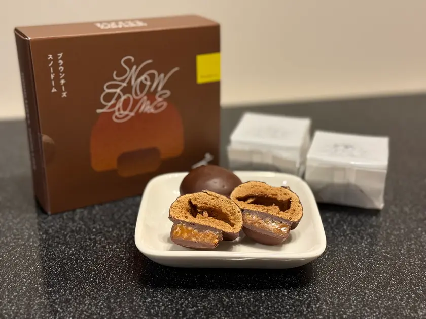 看板メニューはころんとまぁるいフォルムが可愛らしい「SNOWDOME」。フレーバーはプレーンとチョコレートがありますが、今回は人気No.1のチョコレートを購入しました!4個入/1,296円のほか、8個入/2,484円、12個入(プレーンとチョコレート各6個入のアソートBOX)/3,564円も。一つひとつカップ入りで丁寧に個包装されているので、移動中に潰れてしまう心配もなく、一つずつ配りやすいので帰省や旅行のお土産としても最適です。