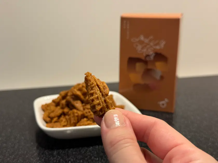 さらにもう一品気になった商品があったので購入しました!その名も「ZAKULET」。人気商品「北海道バターのいとこ」とコラボレーションし、ゴーフレットを成形する際に生まれる端っこの生地を活用したサブレだそう。1袋(130g)/1,512円、小分けのお菓子ではありませんが、高級感あるパッケージで知人宅へお邪魔するときの手土産としても良さそうです。