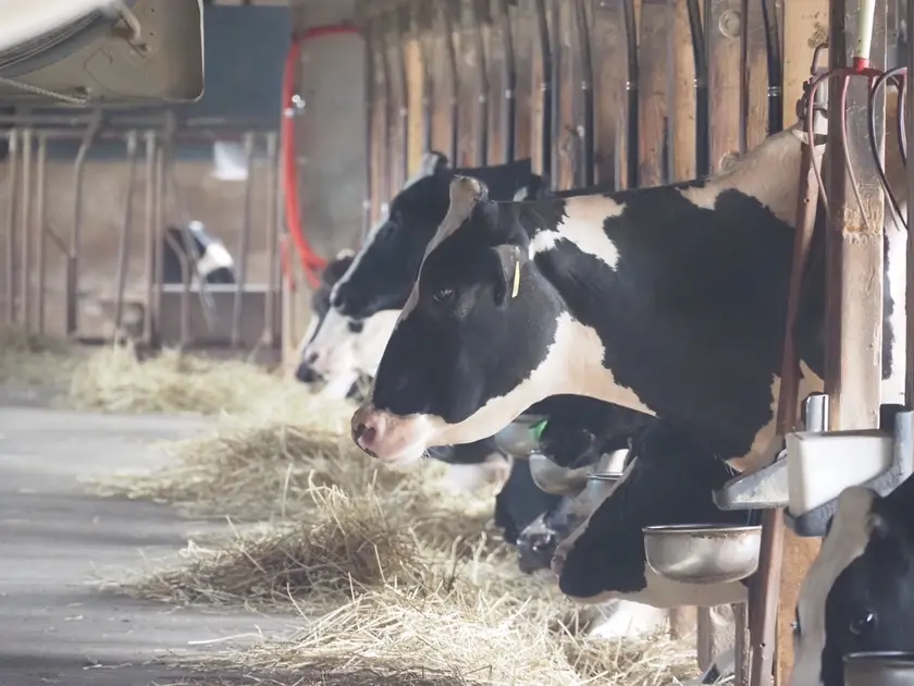 建物の近くには、牛舎があります。かわいいたくさんの牛たちの姿を見ることができました。訪れたときには、生まれて間もない子牛もいて癒されました。