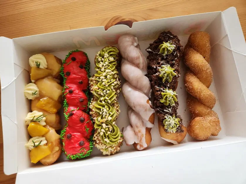 まずは、「シュガー」。外はふわっと、中はもちっとしていて、自然な甘さと軽い食感でシンプルですがペロッと食べれてしまう味です。ひときわ目立つ「ウォーターメロン」は種や皮を模したチップの食感が面白くて口の中が大混雑(笑)。「ピスタチオ」は上品なクリームとドーナツがマッチしてピスタチオ好きにはたまらない味です。