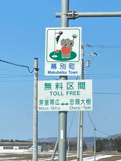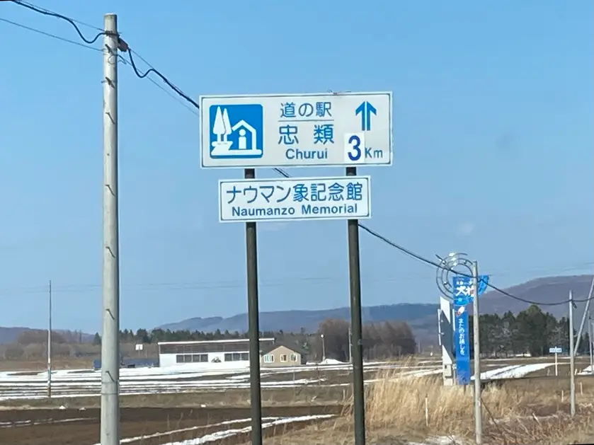 「道の駅忠類」の看板を発見。すぐ先に幕別町のカントリーサインがあった!(ココ)