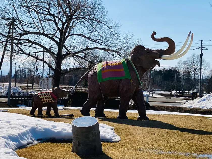 少し歩いた先にあった十勝バス 忠類待合所(ココ)にもナウマン象を発見する。