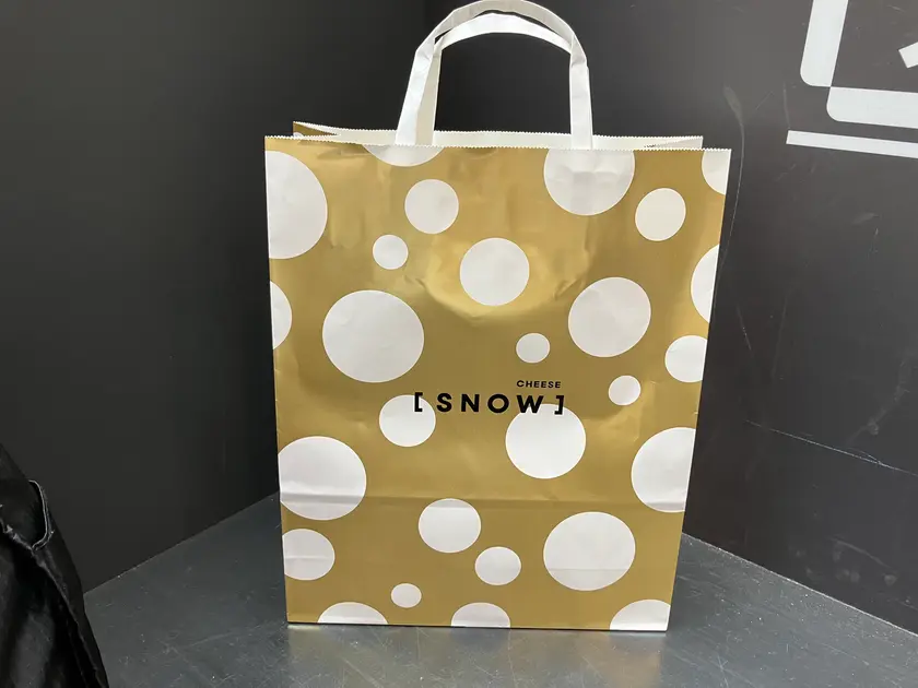 残念ながら金色に輝くあの紙袋は「スノーチーズ新千歳空港店」でのみ購入できるそうで、JALプラザで購入した場合はJALプラザの袋(有料レジ袋)の提供となります。ご注意下さい!
