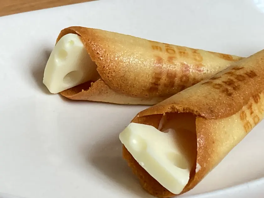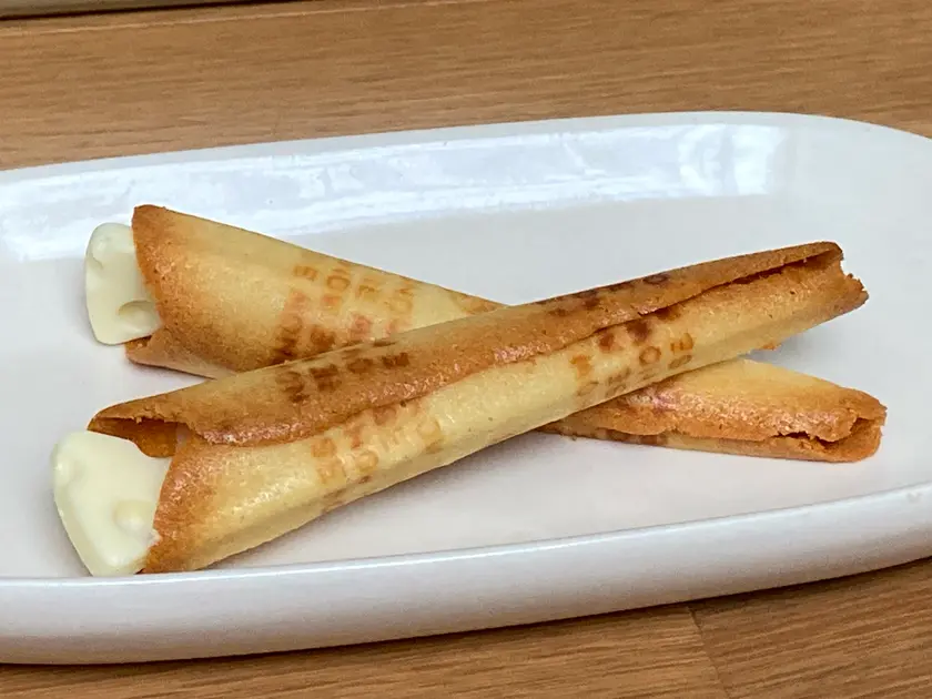 香ばしいバターの香りとさっくりとした食感のチーズラング・ド・シャに、ほのかにミルクが香るホワイトチョコレートクリームとチーズ風味のチョコレートを飾りました。