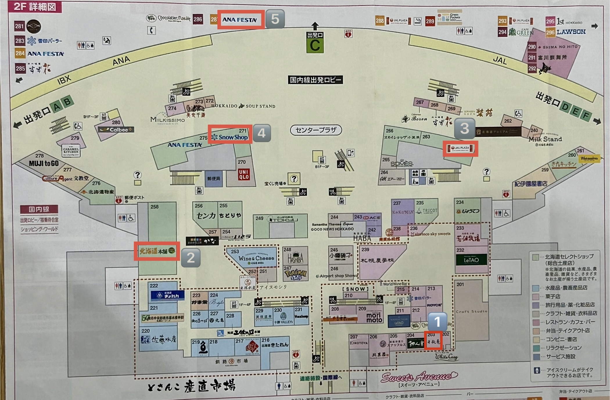 - 北海道千歳市美々987−22 新千歳空港国内線ターミナルビル2階 制限エリア内