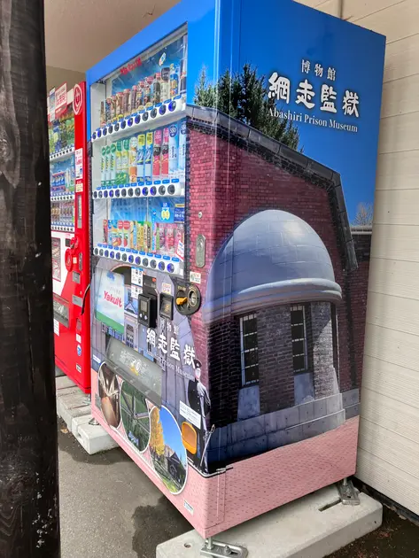 みやげの館入口横の自販機は網走監獄仕様。
