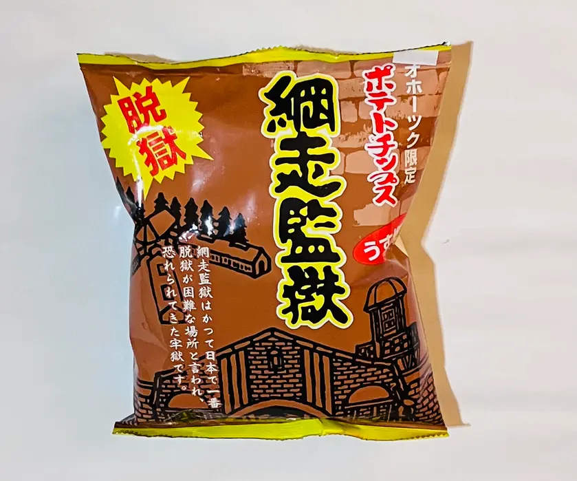 ポテトチップスのパッケージにしては渋いデザイン、さすが網走監獄。脱獄ダメ!絶対。あっさりうすしお味が美味しいポテチでした。網走市ふるさと納税返礼品のひとつでもあります。
