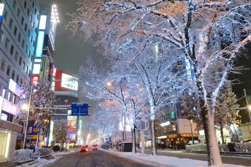 白く輝く光が札幌駅からすすきのまでのメインストリートを華やかに彩る