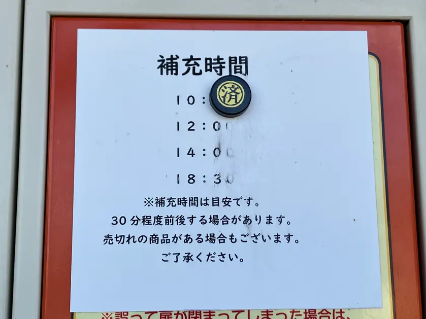 【参考】2025年10月情報ですが補充時間はこのとおり。