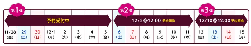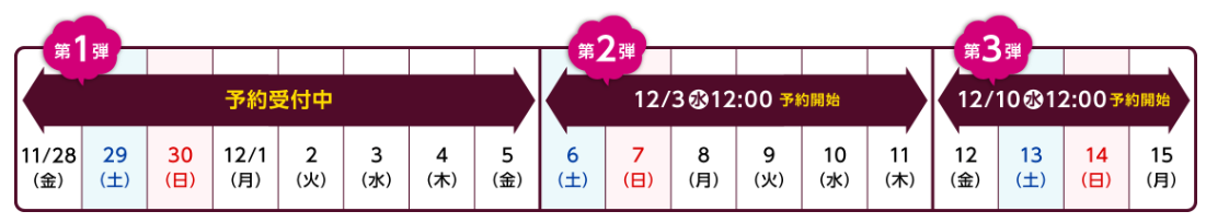 ・第3期(12月12日~15日)→12月10日(水)12:00予約開始