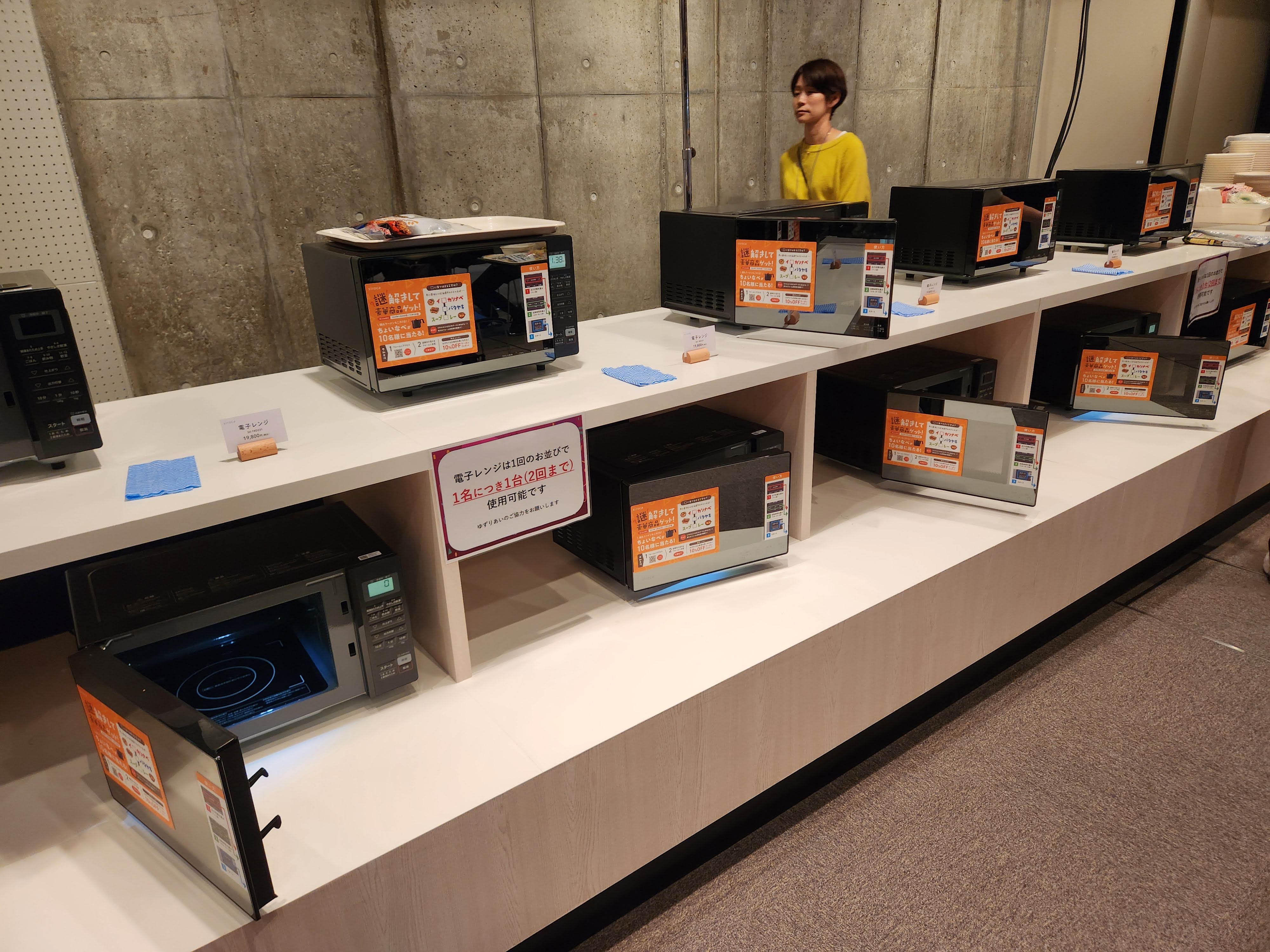 ただし、レンジは数に限りがあり、かつ家庭用レンジでメイン料理のチンには5分以上かかるものもあるため、開始直後はレンジ待ちで込み合いますので注意です。