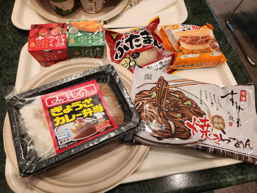 - まずは焦らず、会場全体の商品をゆっくりチェック。北海道コーナーや主食系、アイスまで一通り見て、お腹の空き具合から食べられる量を考えると迷わず選べます。