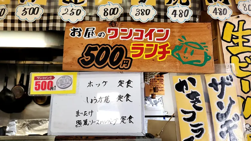 カウンター席に座り、メニューに目を通しますが、ワンコインランチの主張が強すぎます。