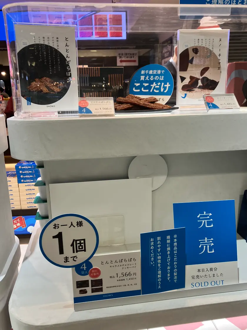 なるべく早い時間に行かなきゃと、朝9時過ぎに新千歳空港到着後、小走りで売場に向かいましたが完売してました。超悪天候の朝だったので、もしかしたからと思ったんですが(^_^;) スタッフさんにお声掛けして撮影だけさせていただきました。