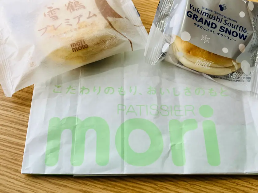 左:雪鶴プレミアム 右:ゆきむしスフレ グランスノー 包装袋に「こだわりのもり おいしさのもと」とありました