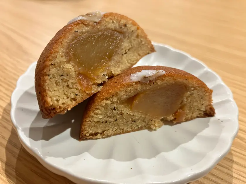 「ヴィジタンディーヌ[冬Winter]」は、生地に紅茶の茶葉が混ぜ込んであり、甘く煮てシナモンで香り付けした一口大のリンゴが入ってました。焼きたては外側がサクっ中ふわ、時間の経過でしっとりするようです。