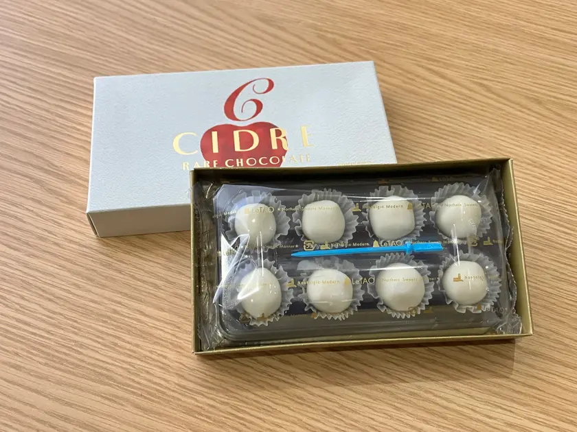 発売以来、多くのお客様を驚かせ魅了してきた人気商品のレアチョコレートシリーズにシードル(りんごからつくったスパークリングワイン)入りが新登場!ルタオ特製生クリームで作るホワイトチョコレートに、アルコール1%未満のシードルを混ぜ込んだ大人なチョコレートです。